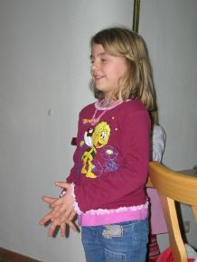 Der hl. Nikolaus las in seinem Buch und fand Worte des Tadels und des Lobes für die Kinder. Von jedem einzelnen wusste er sowohl das Gute, aber auch das weniger Gute. Trozdem durfte sich jedes Kind nach dem Vortrag ein kleines Geschenk abhlolen. Mit Freuden nahmen dieses an sich und bedankten sich artig dafür.