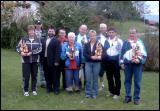 Das Siegerfoto mit DVV-Präsident Josef G., Bgm. Alois O. u. Vorsitzender Alois D.l mit den Vertretern der teilnehmer- stärksten Vereinsabordnungen