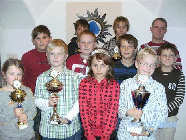 Die Sieger 3.R.v.l. Lenni A., Gotthard S.l, Dominik Sch.; 2.R.v.l. Markus S., Daniel H., Simon A., Martin S.r; 1.R.v.l. Annalena R.r, Simon Sch., Angelina W.r, Jonas Sch.